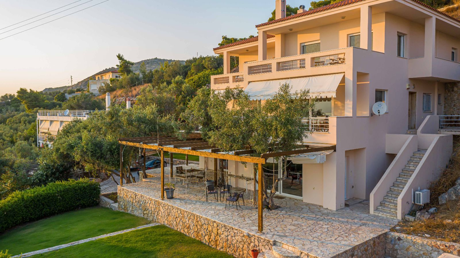 Πωλείται Πολυτελής Βίλλα 600 τ.μ. στο Φλάμπουρο Λουτρακίου – Μοναδική Θέα Θάλασσα & Δάσος, Σε Οικόπεδο 6 ΣτρεμμάτωνΣτην καταπράσινη περιοχή Φλάμπουρο του Λουτρακίου, με πανοραμική θέα στη θάλασσα και το δάσος, διατίθεται προς πώληση μοναδική βίλλα συνολικής επιφάνειας 600 τ.μ., σε ιδιόκτητο οικόπεδο 6 στρεμμάτων.Η κατοικία αποτελείται από δύο αυτόνομα κτίρια (300 τ.μ. το καθένα), τριών επιπέδων το καθένα, με κάθε όροφο να είναι 100 τ.μ., προσφέροντας άπλετους χώρους και ανεξαρτησία για κάθε χρήση (κύρια κατοικία, φιλοξενία, επένδυση).Το ακίνητο χτίστηκε το 2005 και βρίσκεται σε εξαιρετική τοποθεσία που συνδυάζει την ηρεμία της φύσης με την εγγύτητα στο Λουτράκι, τα ιαματικά του νερά, τις παραλίες, την αγορά και την κοσμοπολίτικη ζωή της περιοχής.Ιδανικό για κατοικία υψηλών προδιαγραφών, τουριστική εκμετάλλευση ή και επένδυση με πολλαπλές δυνατότητες αξιοποίησης.