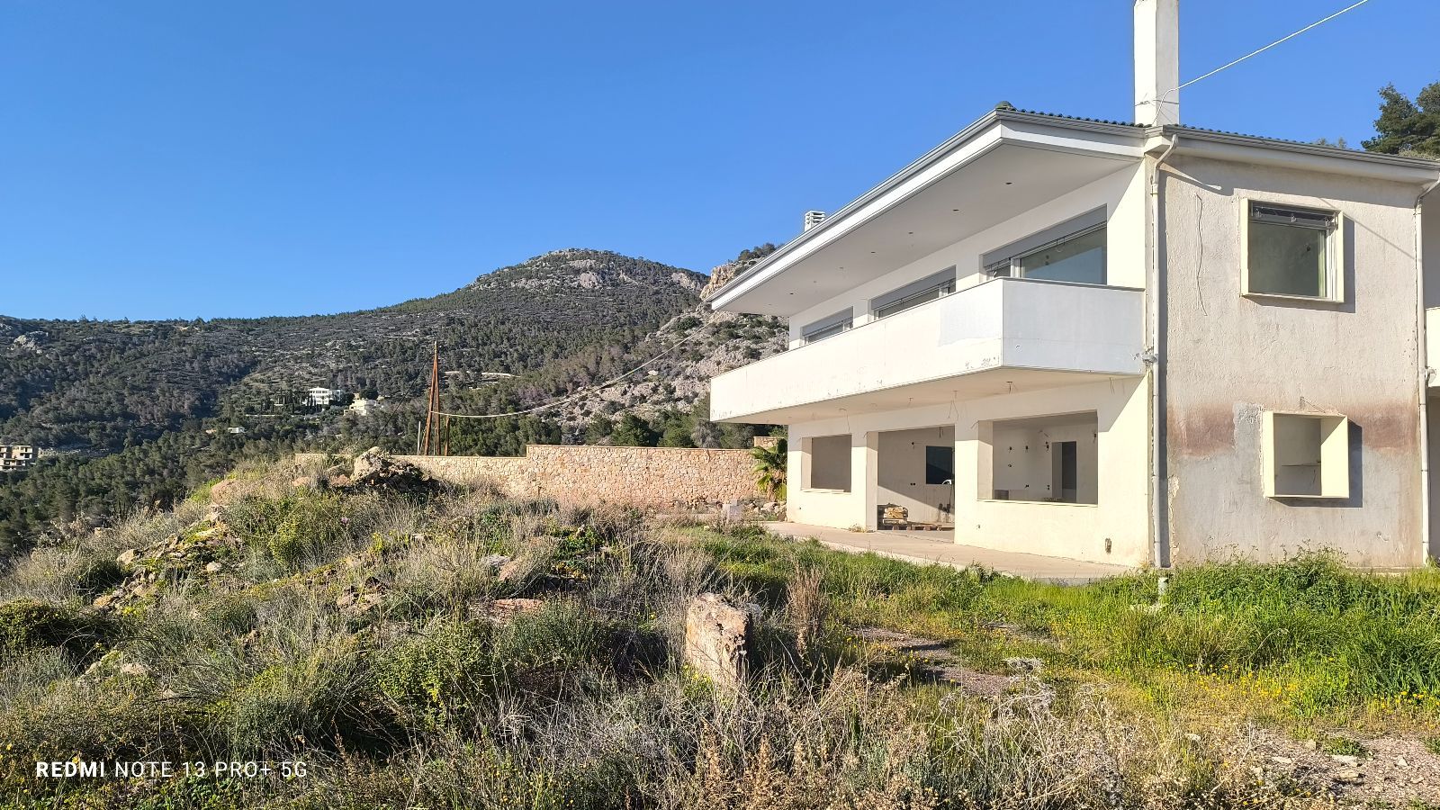Σε ένα καταπράσινο οικόπεδο 4.170τ.μ., δεσπόζει αυτή η ημιτελής βίλα 348τ.μ., κατασκευασμένη σε δύο επίπεδα (174τ.μ. ανά όροφο), με αρχιτεκτονική που συνδυάζει λειτουργικότητα και αισθητική.