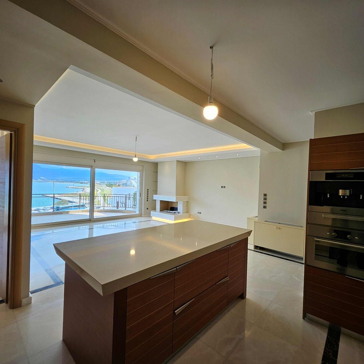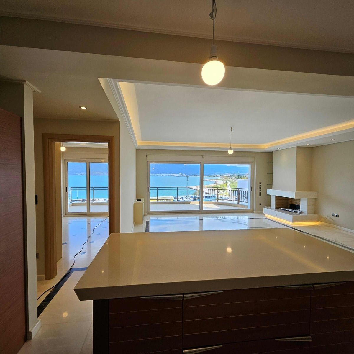 Ο ενιαίος χώρος σαλονιού–τραπεζαρίας–μπαρ–κουζίνας ξεχωρίζει για την πολυτέλεια και την αισθητική του.