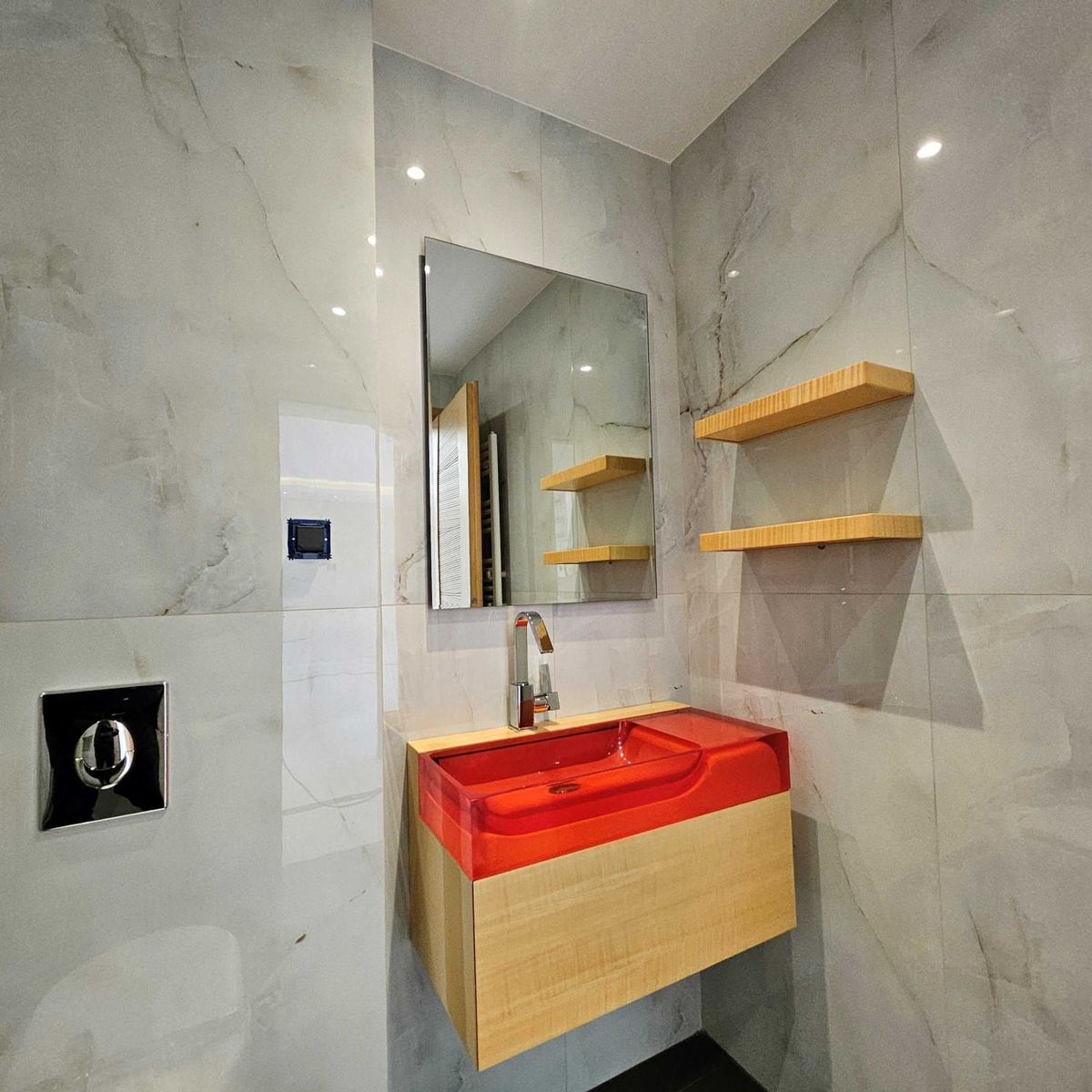 Εκλεκτό μάρμαρο Aurora (extra top κατηγορία του Rosa Portogalo) και Nero Portoro στον ενιαίο χώρο