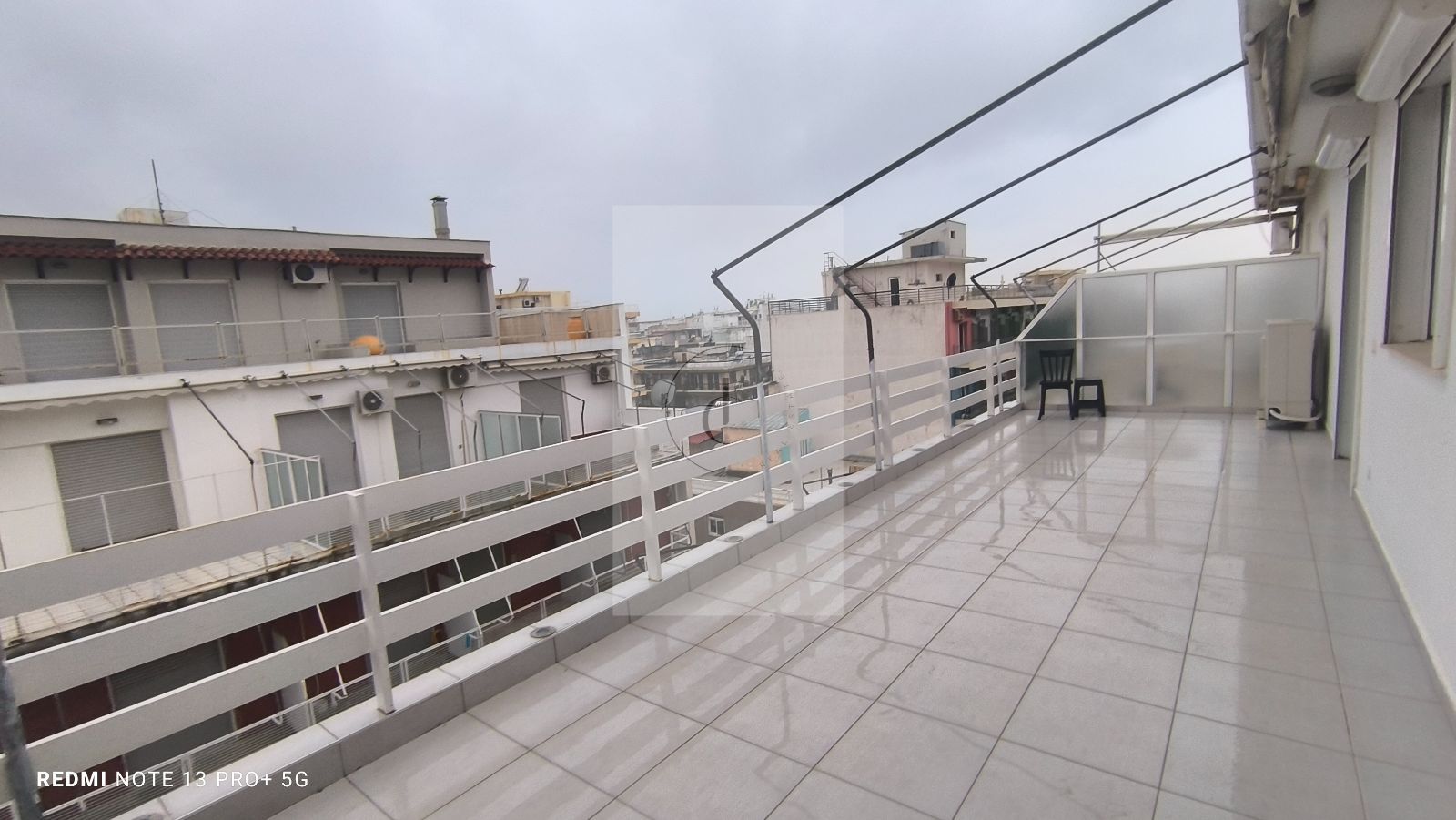 Μεγάλο μπαλκόνι στο σαλόνι περίπου 60 τ.μ. με σποτ φωτισμό.