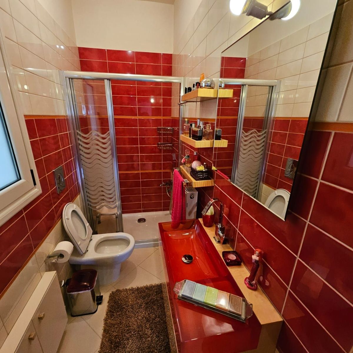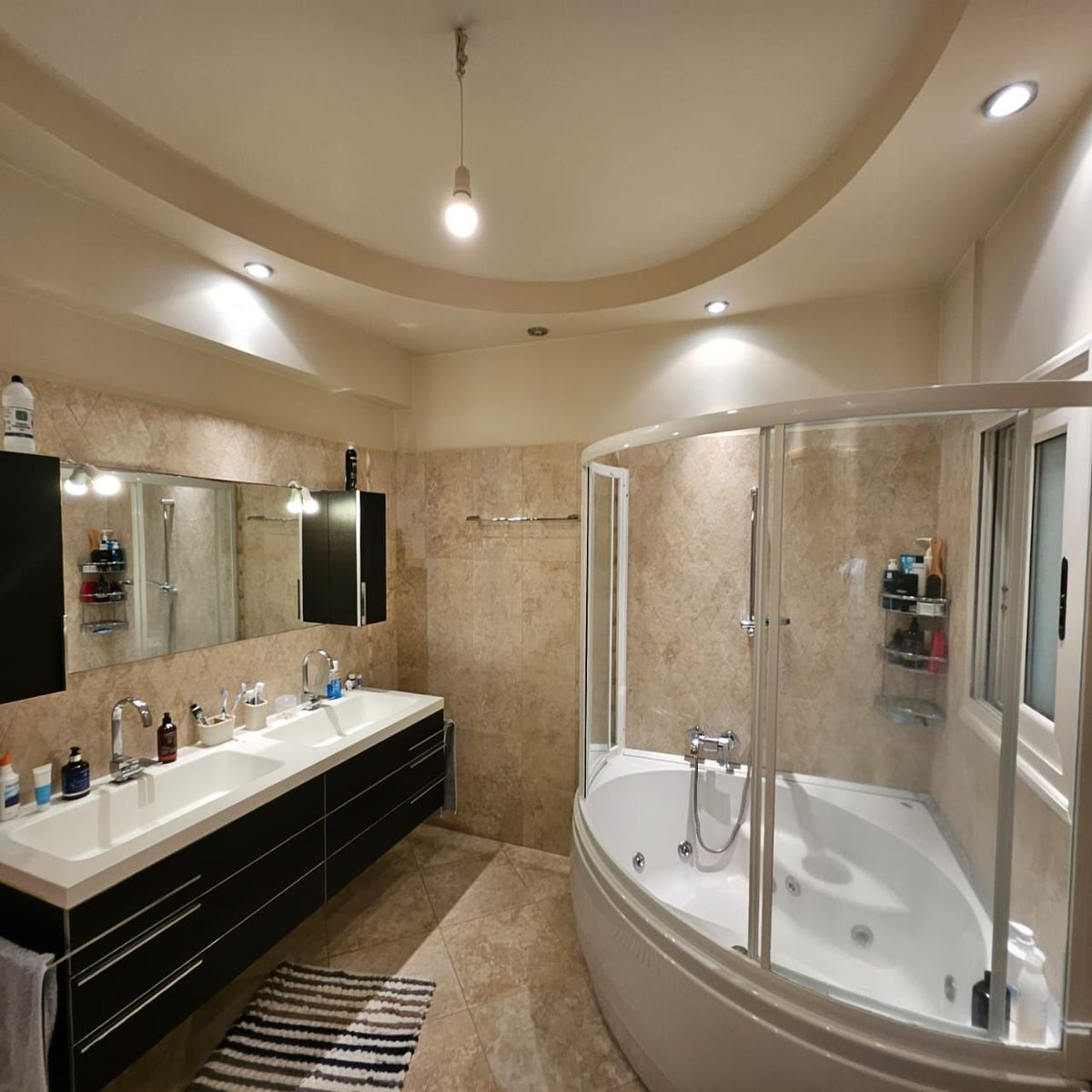 -3 μπάνια , ένα πολύ μεγάλο με μπανιέρα υδρομασάζ,διπλό νιπτήρα και πλακάκια trussardi,,ένα ξένων με μεγάλη ντουσιέρα κι ένα στο master bedroom με ντουσιέρα.