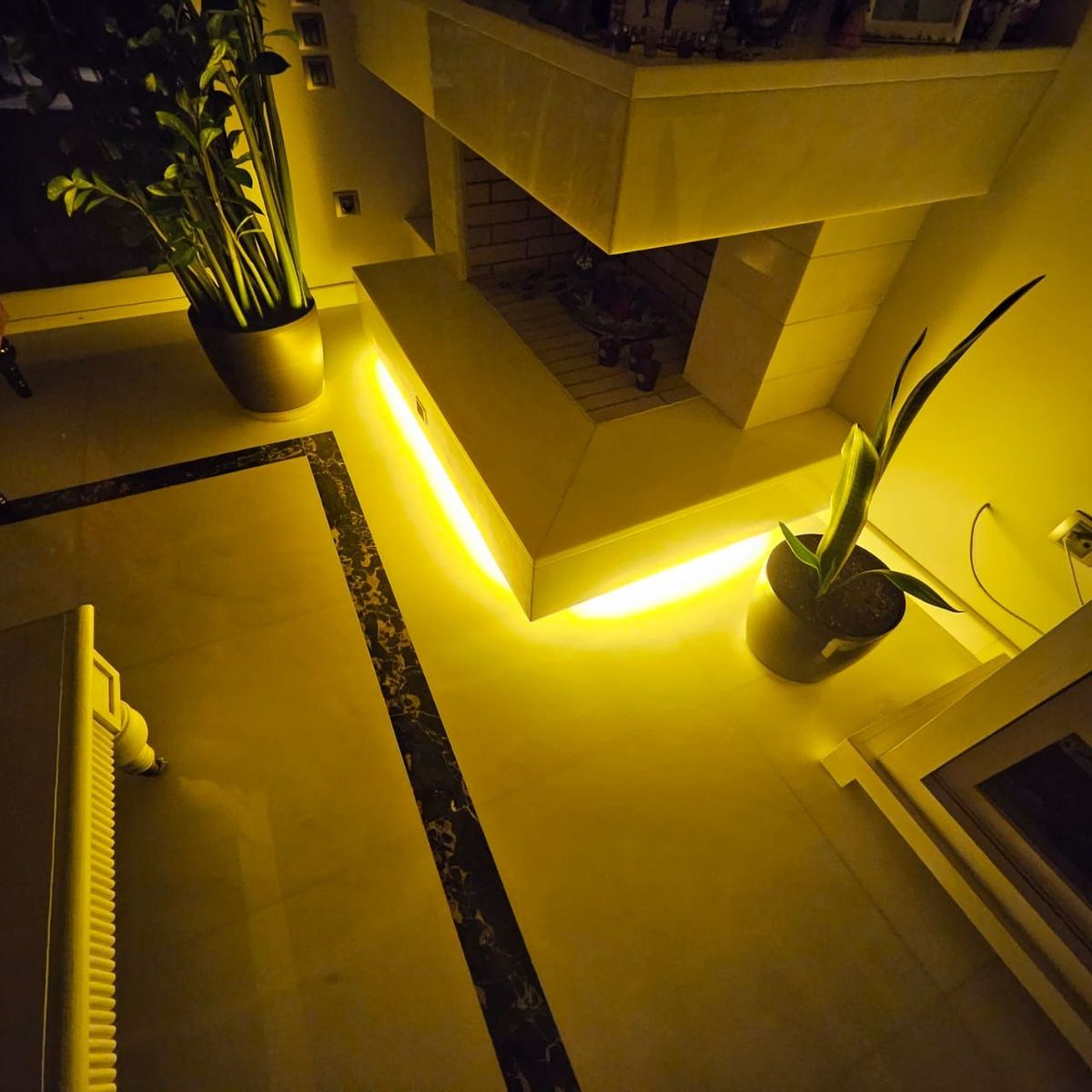 - Τζάκι όλο επενδυμένο με μάρμαρο aurora και κρυφό φωτισμό.